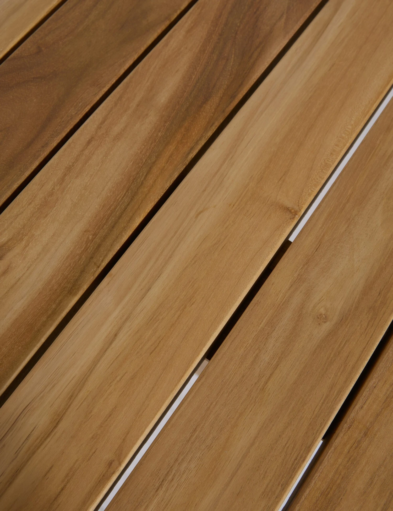 The Carlita table brings effortless sophistication to outdoor style with an airy, modern silhouette rooted in rustic charm. The teak construction offers a natural durability that will season beautifully in any setting. This large wood dining table can transform your terrace, patio, or sunroom into a year-round escape.