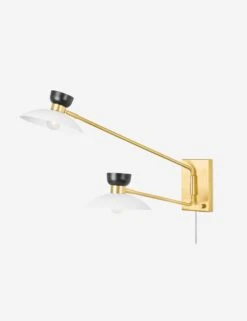 Solid brass details give this chic pendant a vintage finish. With a unique shape and diffused white glass, it’s strong enough in style to hang alone or in multiples for added impact.