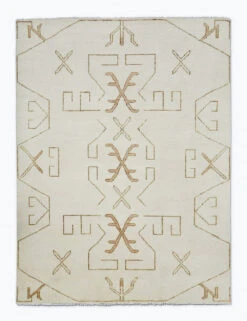 A reinvented geometric design in a warm palette that’s been meticulously hand-knotted together using 100% sheep’s wool, lending modern personality with a subtle hint of its Oushak influence. Soft wool illustrating striking symmetrical linework in a neutral hue makes this rug the versatile yet bold layer you’ve been searching for.