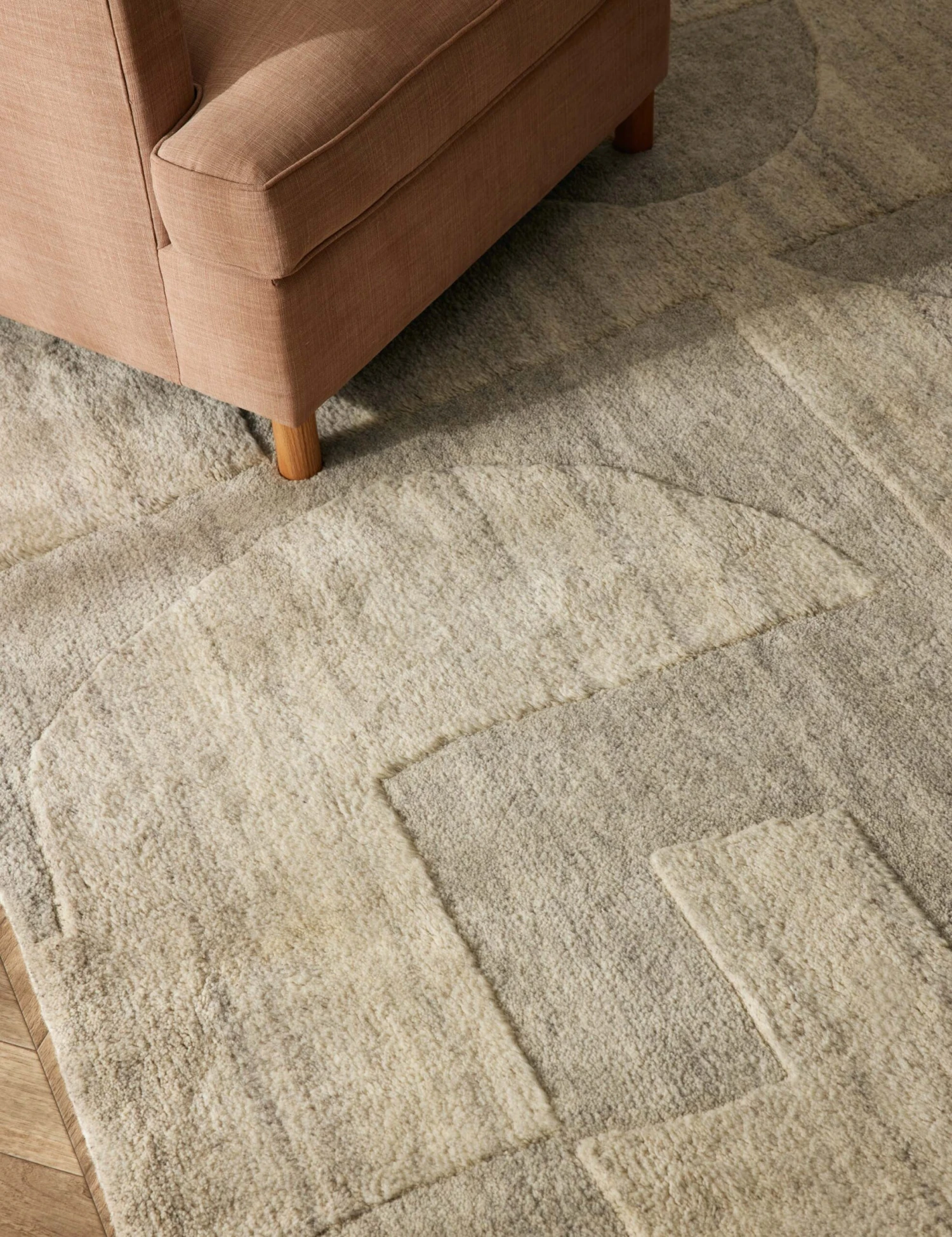 Elevate your space with the natural touch of this meticulously hand-knotted floor rug. The woolen blend rug strikes an earthy balance with a geometric design in a beautiful neutral tone that styles with understated sophistication.