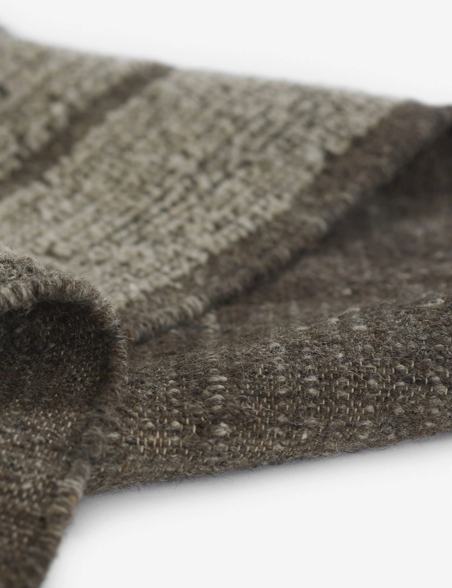In a darker neutral palette, this area rug stylishly combines earth tones and timeless geometric pattern. Handcrafted from a wool-cotton blend, we love how its design instantly adds visual impact. Place this durable, low-pile floor rug in a high-traffic area like your living, dining, or entryway spaces.