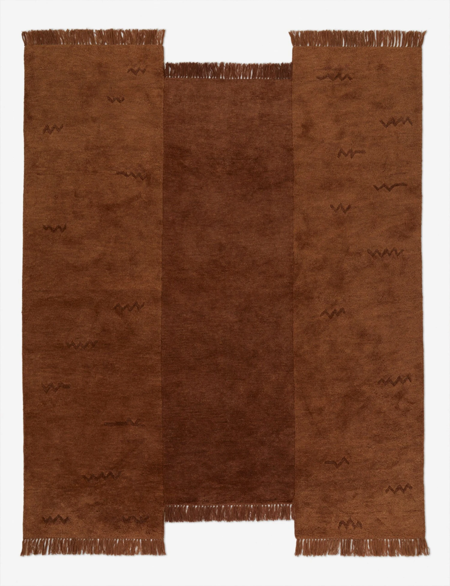 Set a bold foundation with the Koukero rug. The unique design offers a soft woolen texture with a generous fringe in deep earthy tones that will enrich the room. This hand-knotted rug is from our exclusive Sarah Sherman Samuel collaboration and features all the trademarks of her warm, edited style.
