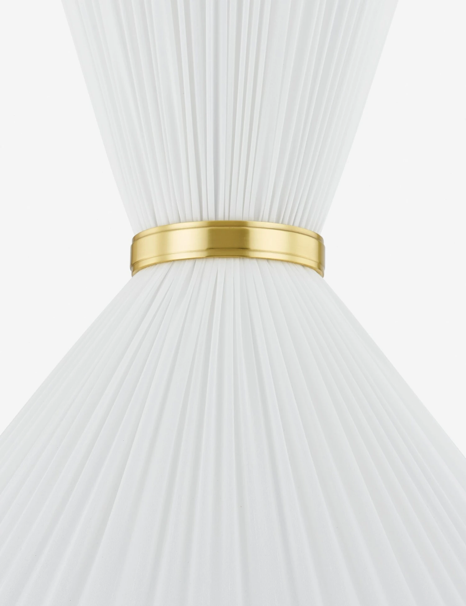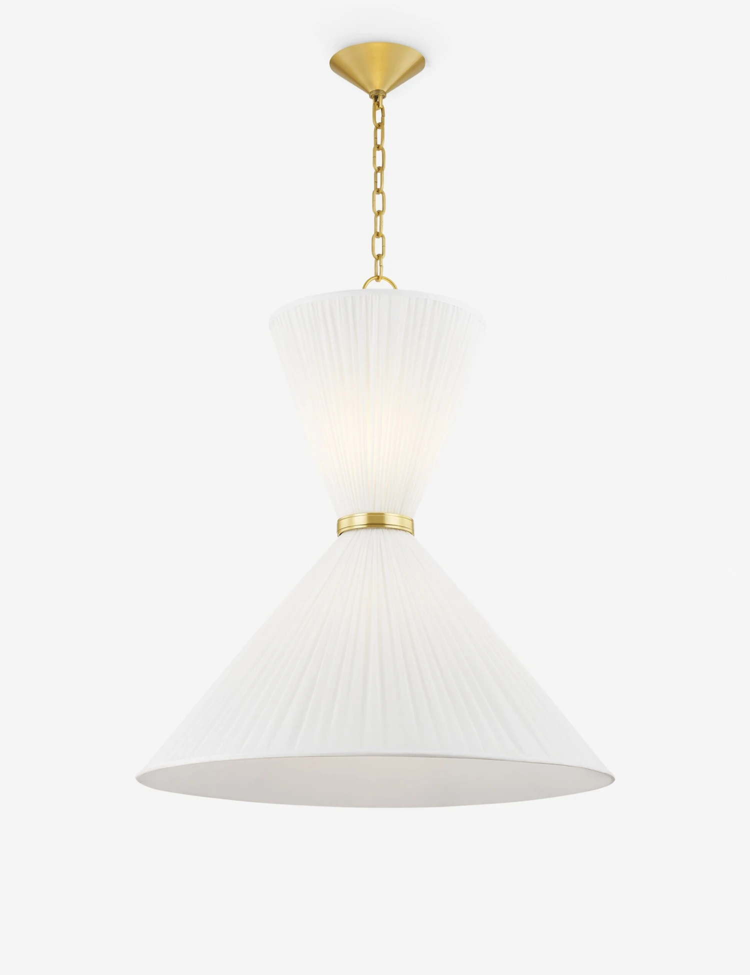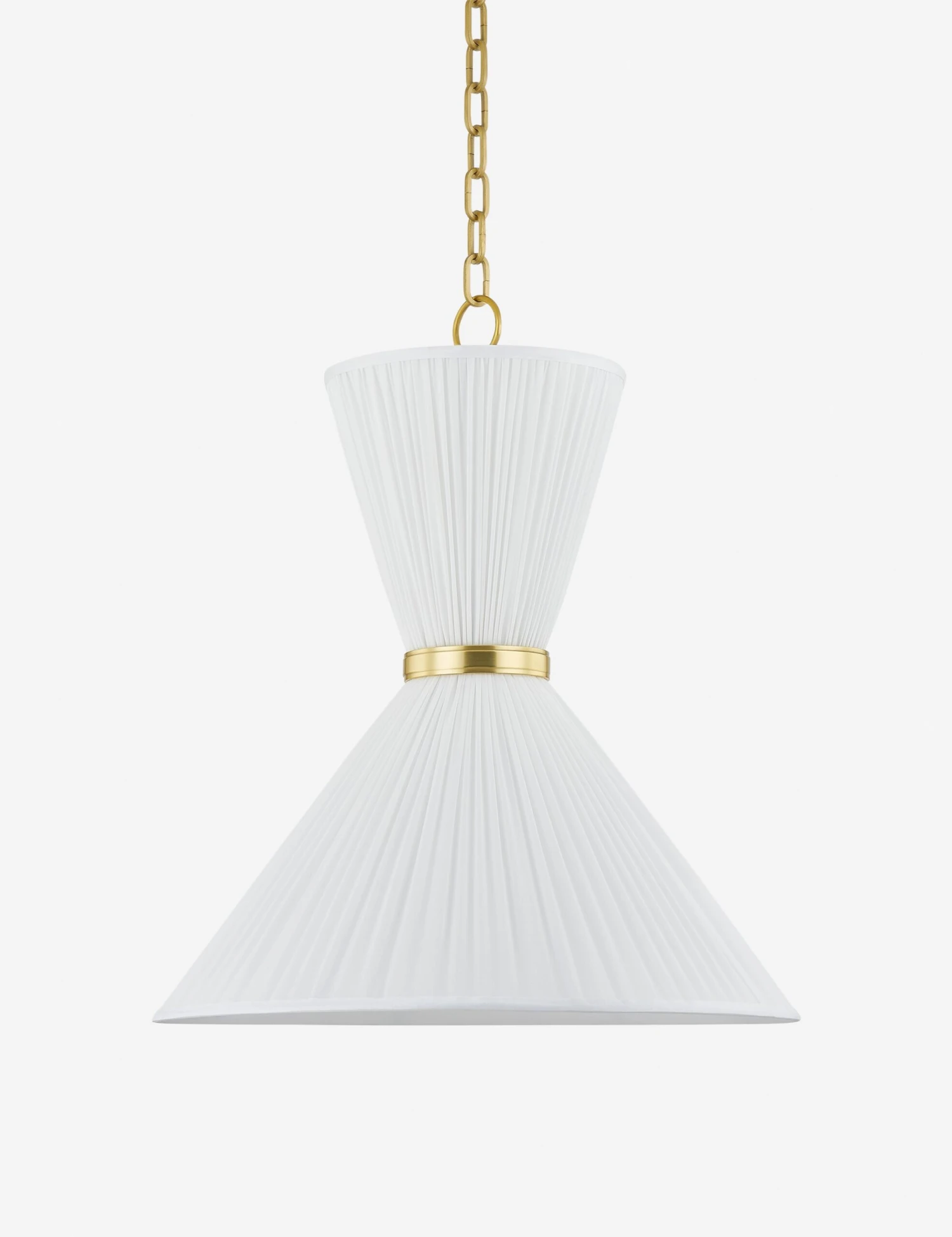 With its crisp linen shade gathered into a ruffled hourglass, the Latsko pendant has a fresh elegance about it. This chic hanging light fixture is suspended by a chain with matching metal accents for that perfect touch of polish overhead.