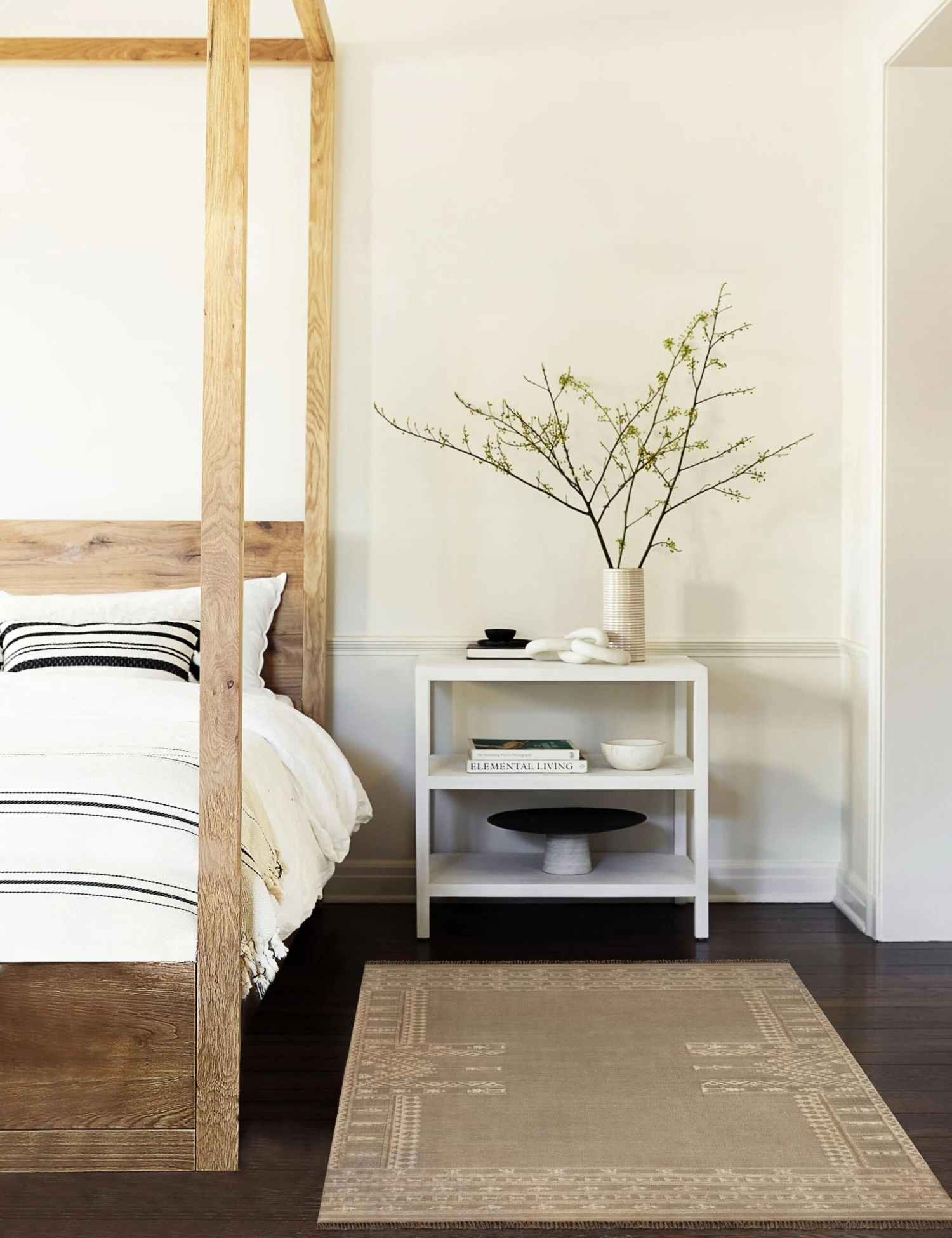 Take a closer look at the space-dyed weave used in the Kaba Rug, and you’ll see how the natural variations in the color give it a well-traveled look. The intricate geometric design offers a little Southwestern inspiration, while the rich contrast and fringed ends recall hand-dyed textiles from all over the globe. It’s a truly stunning rug you can style in any space.