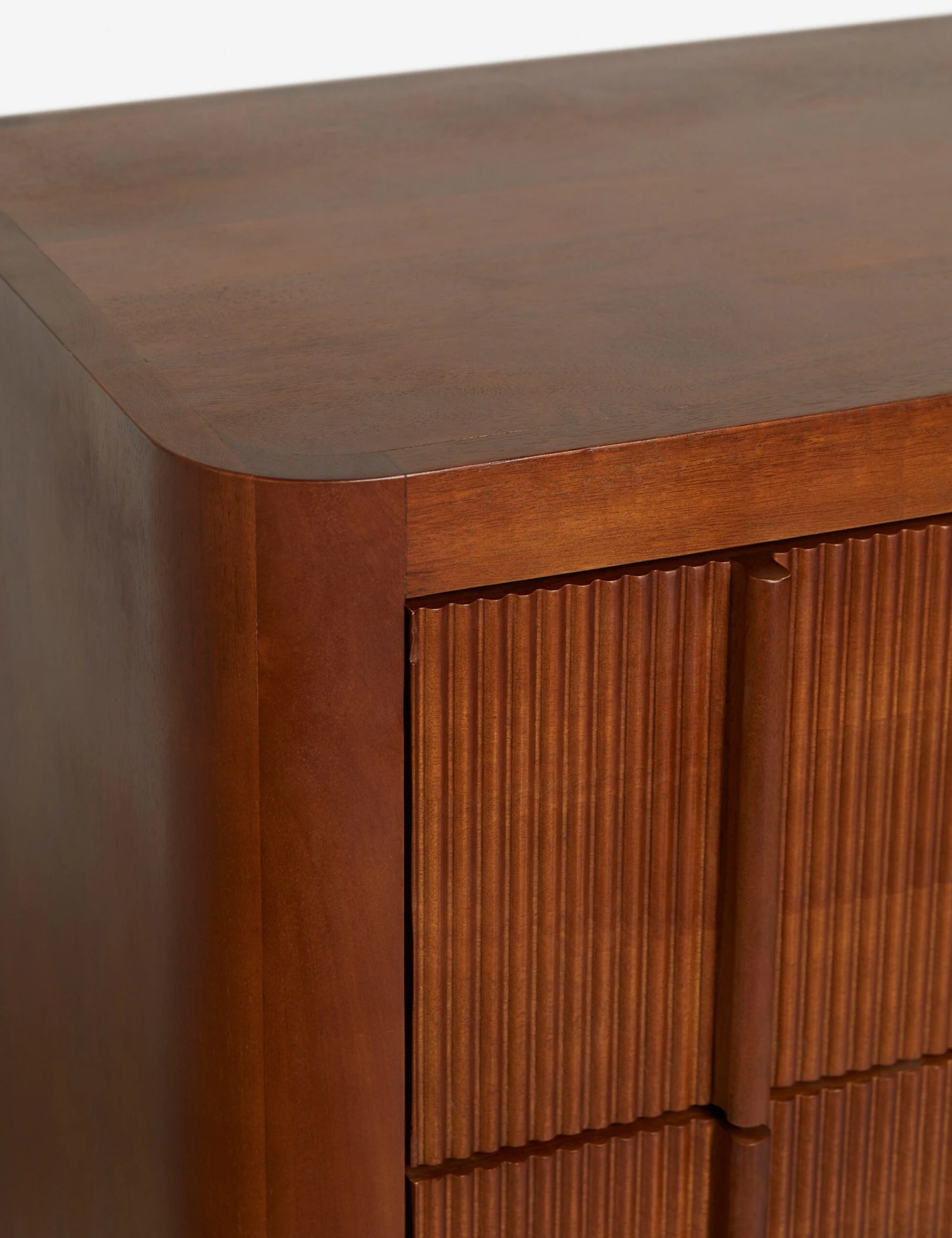 The Merrit dresser features a deco-inspired woodwork construction that pairs crisp, curving lines with ridged detailing and carved drawer pulls. Set on a plinth base, this dresser has six spacious drawers to add function and style to a transitional bedroom look. This piece is from our exclusive Sarah Sherman Samuel collaboration and features all the trademarks of her warm, edited style.