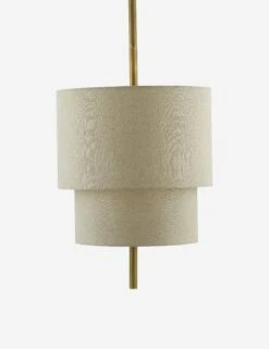 The Morrow pendant features simple shapes stacked and wrapped in linen for a clean, understated profile. The central stem is finished in antique brass to add a touch of sophistication and poise. With its natural fiber texture and polished accents, this minimalist pendant design can fold into transitional and modern looks with a seamless appeal.