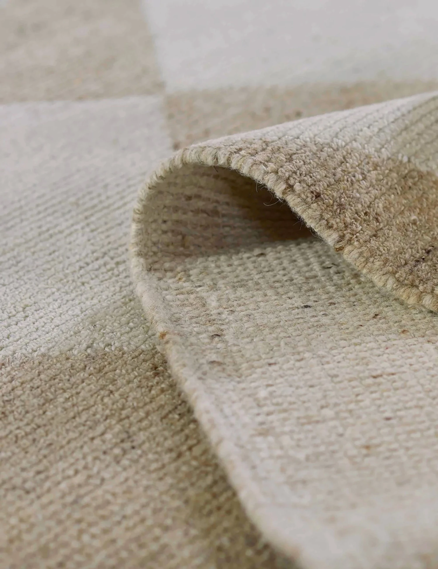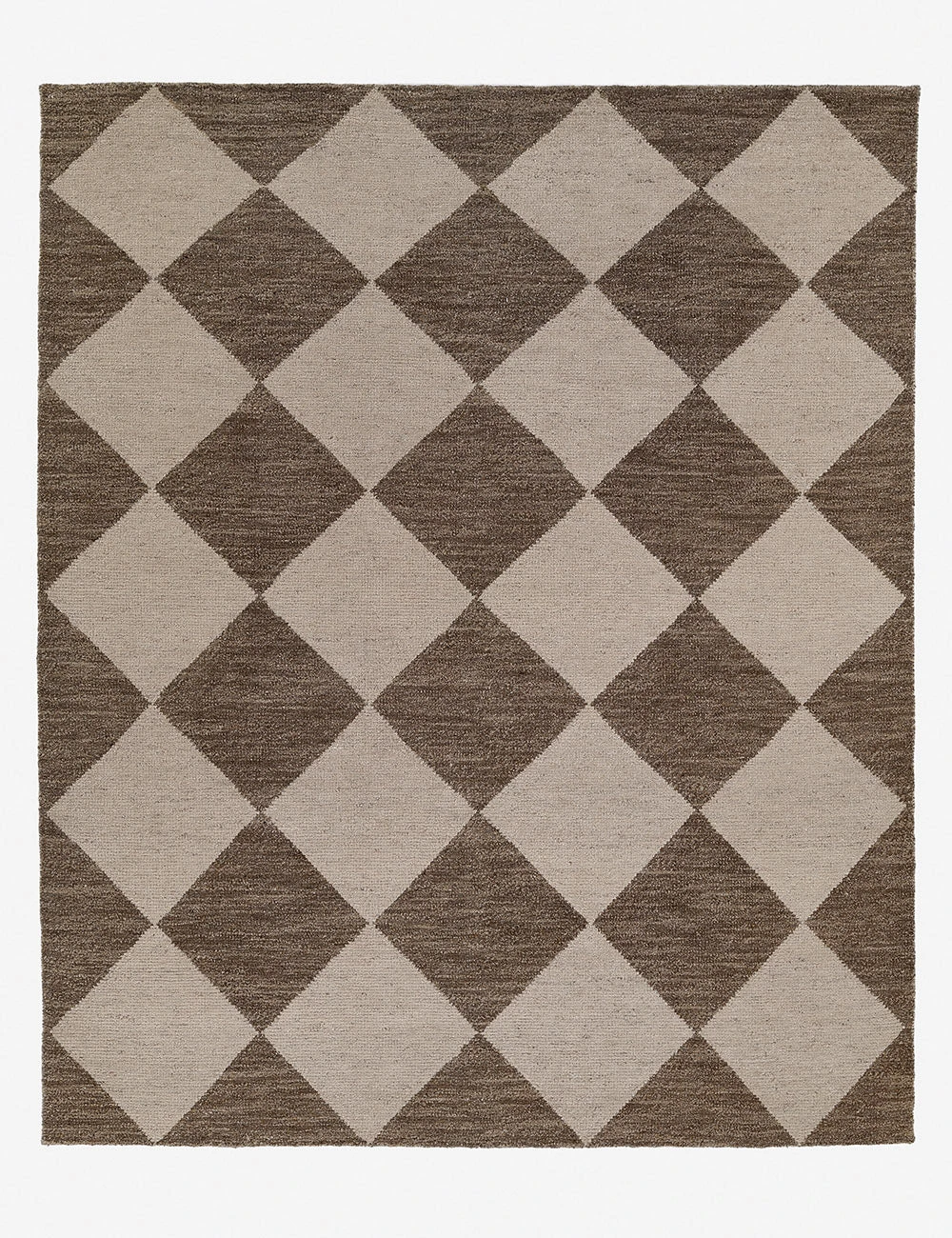 A diamond-checked pattern is brilliantly balanced by understated earthy hues for this area rug. Hand-knotted from wool, this two-toned design makes for a dynamic and durable rug that can easily be curated with warm neutrals in your living space or bedroom.