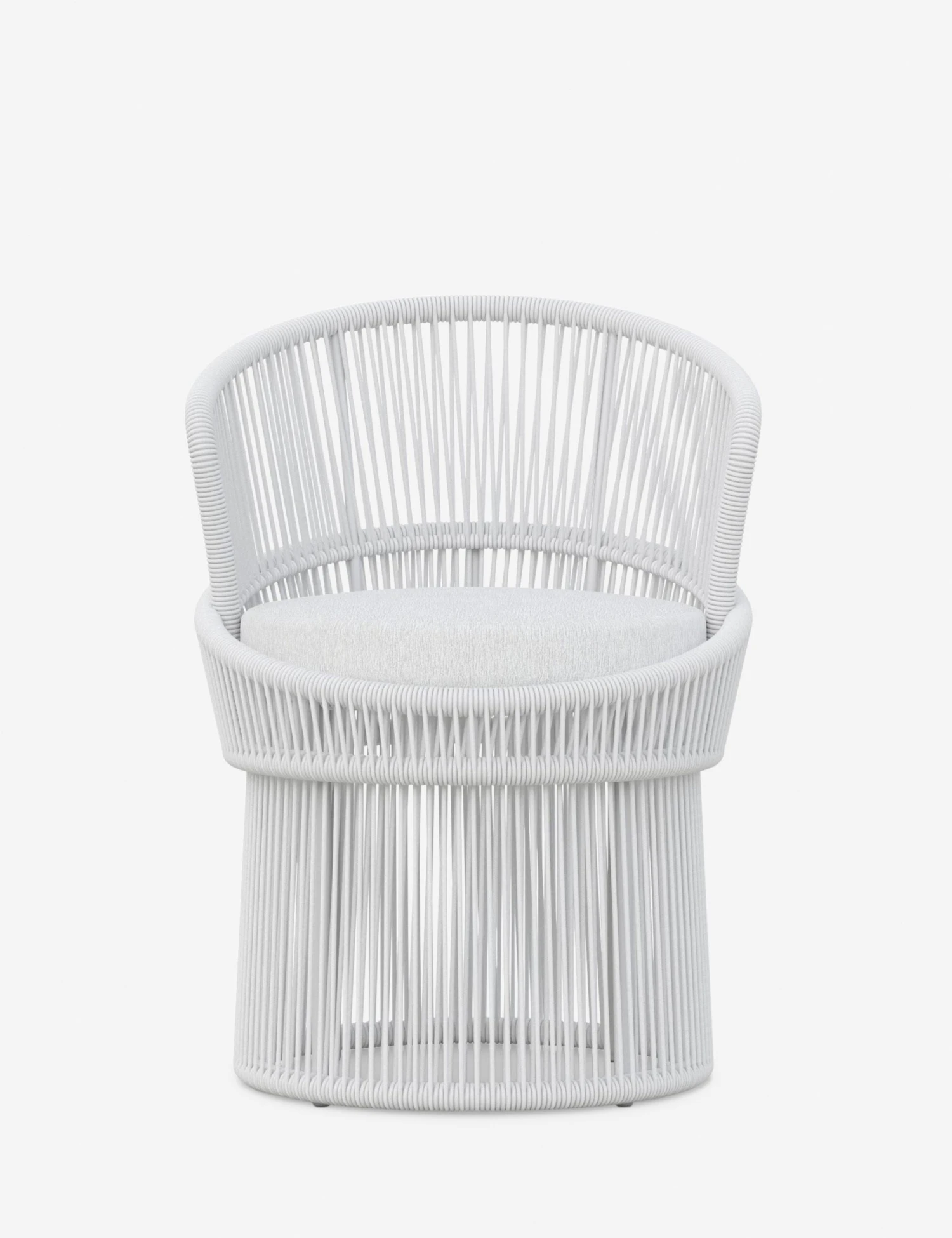 Elevate your indoor-outdoor style with the Portillo dining chair. The aluminum frame curves into a tall-backed silhouette—strung with all-weather rope and fitted with a deep, performance cushion that removes for easy care. The dramatic profile sets a place for elegance—plus, this dining seat swivels for a dynamic touch tableside.