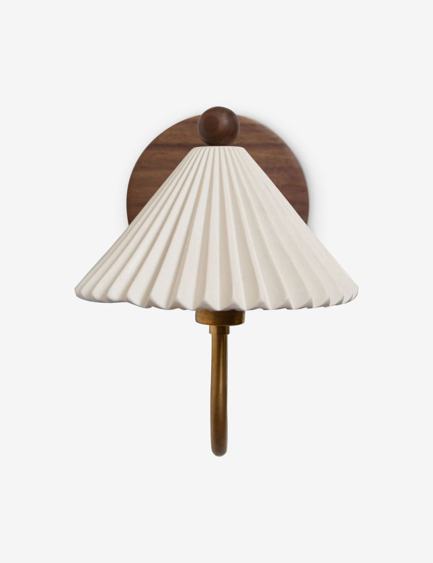 Handmade in Canada, Huey Lightshop offers an artful approach to lighting—blending traditional influences with a modern sensibility. Thoughtfully rustic with a forward touch, the Prairie sconce light brings a fresh edge to timeless textures. Walnut and brass topped with a pleated ceramic shade inspire warmth and charm in this classic wall sconce.