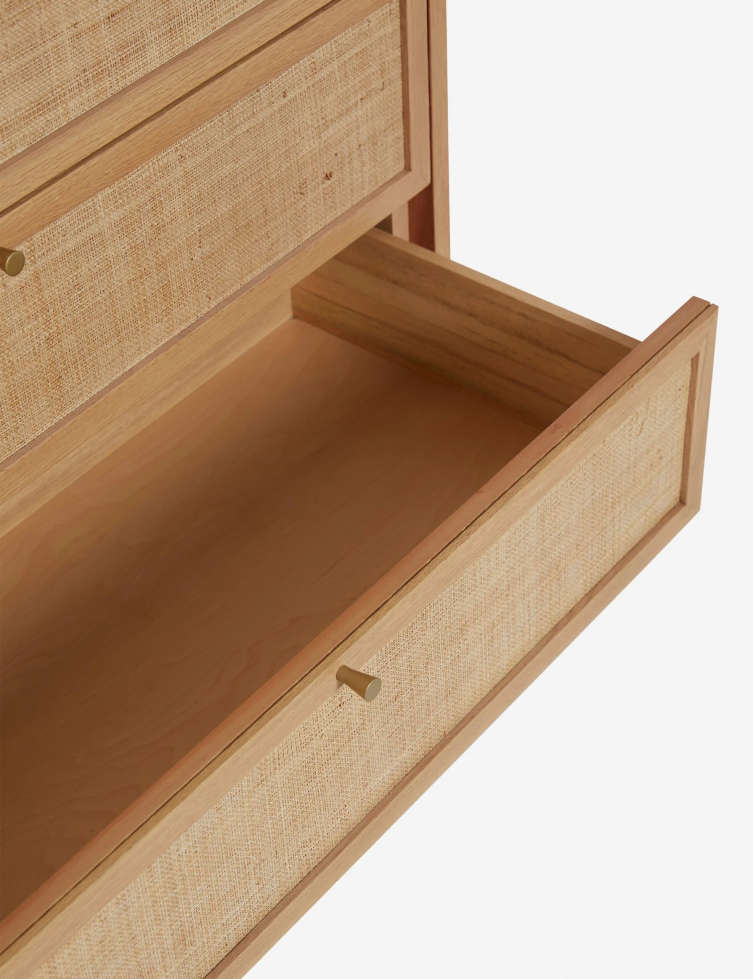 Keep it timeless for a look that’s fresh with Suzette. The collection’s rounded oak frames feature grasscloth paneling for a soft, airy feel full of natural texture appeal. Six soft-close drawers offer spacious storage with a compact footprint in this tall dresser design.