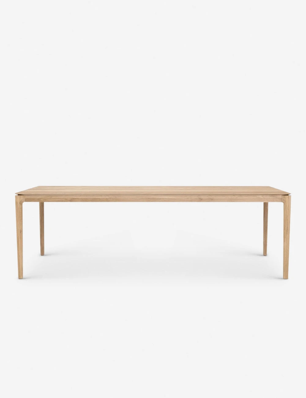 Simple design creates a standout look for this ethically sourced solid oak dining table with an oiled finish. Beveled edges and slightly tapered legs give it timelessly cool mid-century feel.
